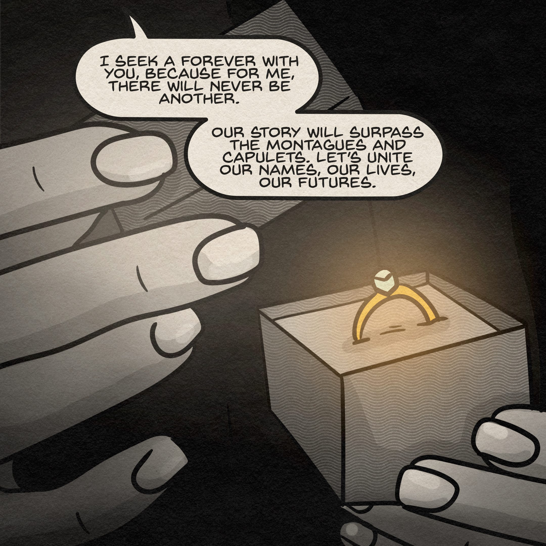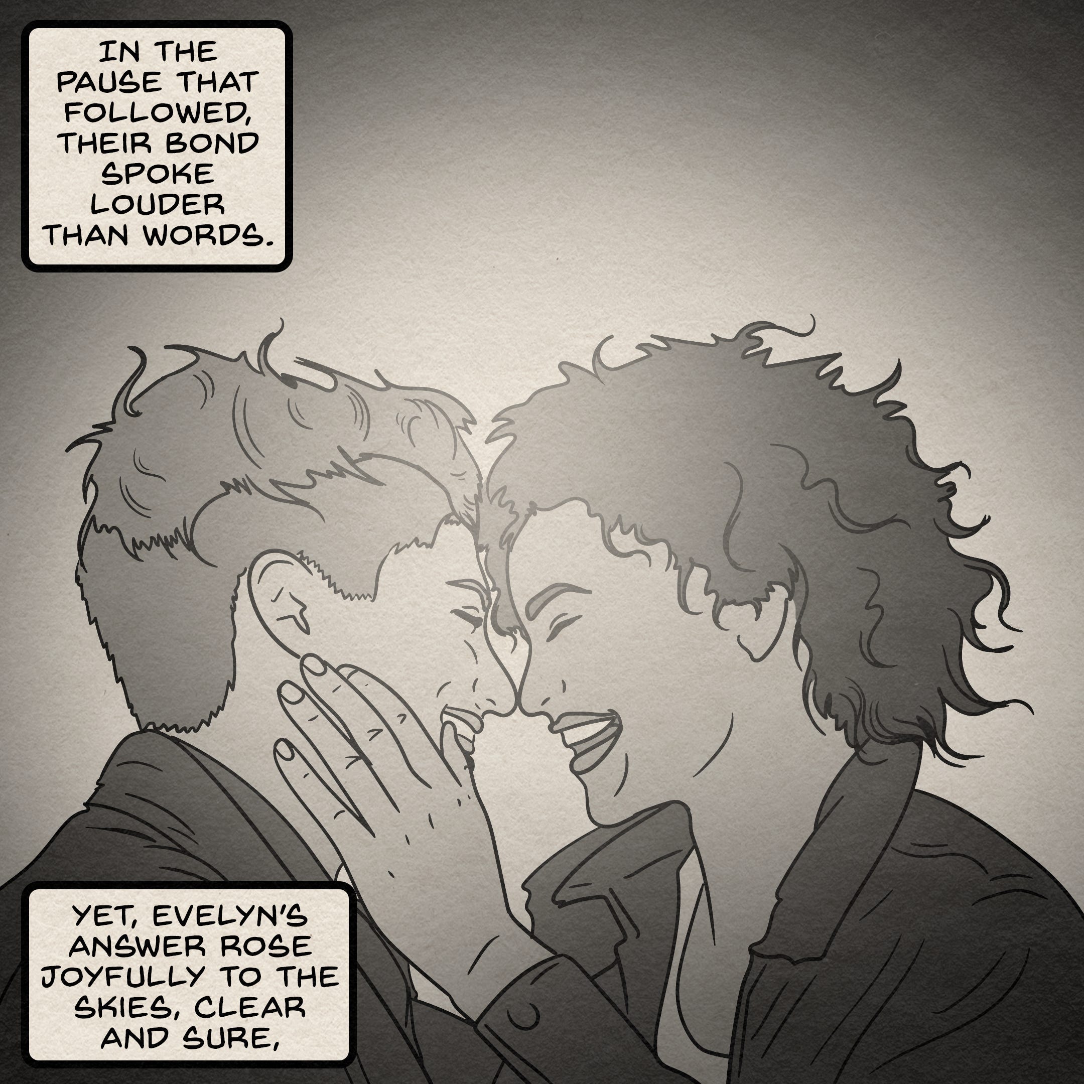 The closing deliberately doesn’t show us what happens next. We don’t see the ring go on, the kiss, the celebration. What matters is that moment of choice—Evelyn’s “yes” rising clear and joyful to the sky. That’s the whole story. Everything else is just an epilogue.