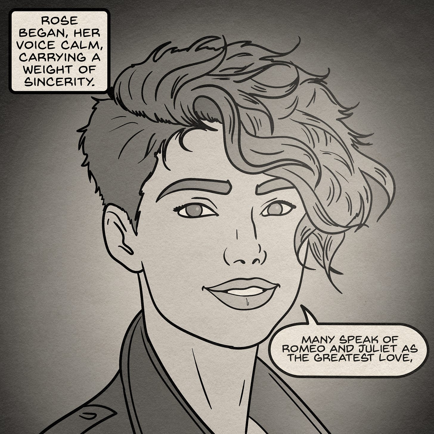 I wanted Rose to acknowledge the Romeo and Juliet story—to honor what it represents about intensity and passion—but then ask for more. Ask for better. A love that doesn’t burn out in five days but builds a life across decades.